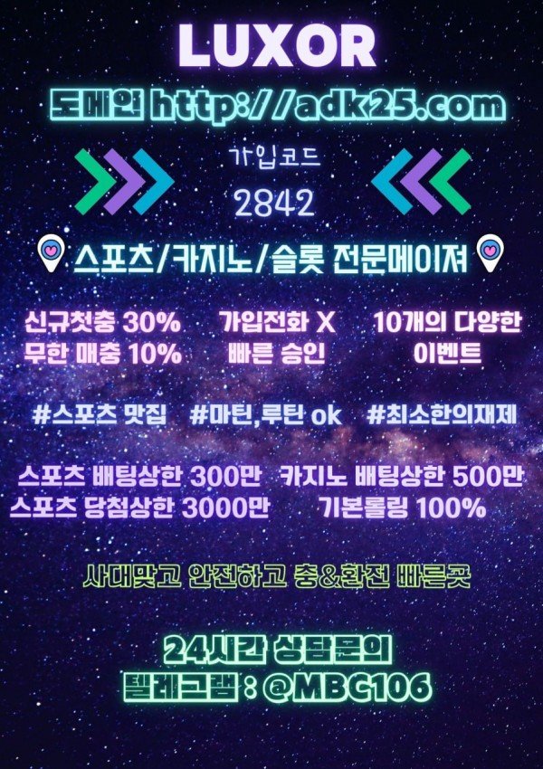 ❤️ [LUXOR] 신규첫충30% / 매일첫10% / 배팅제재없음 / 정싸 토지노❤️