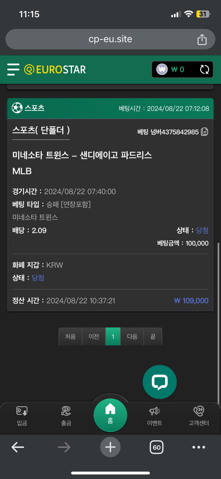 비제휴 유로스타 적중
