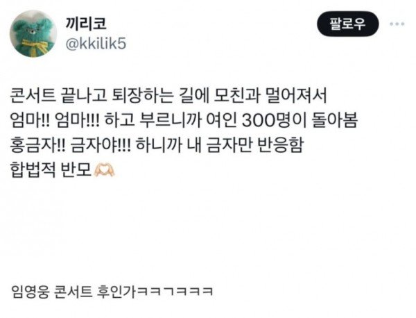 엄마한테 합법적으로 반말 할 수 있는 장소 준스통 0 116 0 0 2024.05.31 14:51 ㅋㅋ 0 0 Author 0 0 Lv.9 준스통 실버 100,650 (34.6%) 등록된 서명이 없습니다.