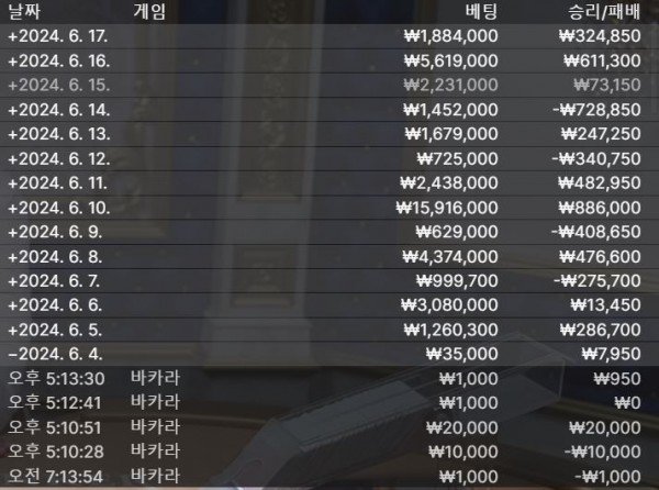 그리고 플레이어는 장줄을 잘안주네요 뱅커기준으로하면