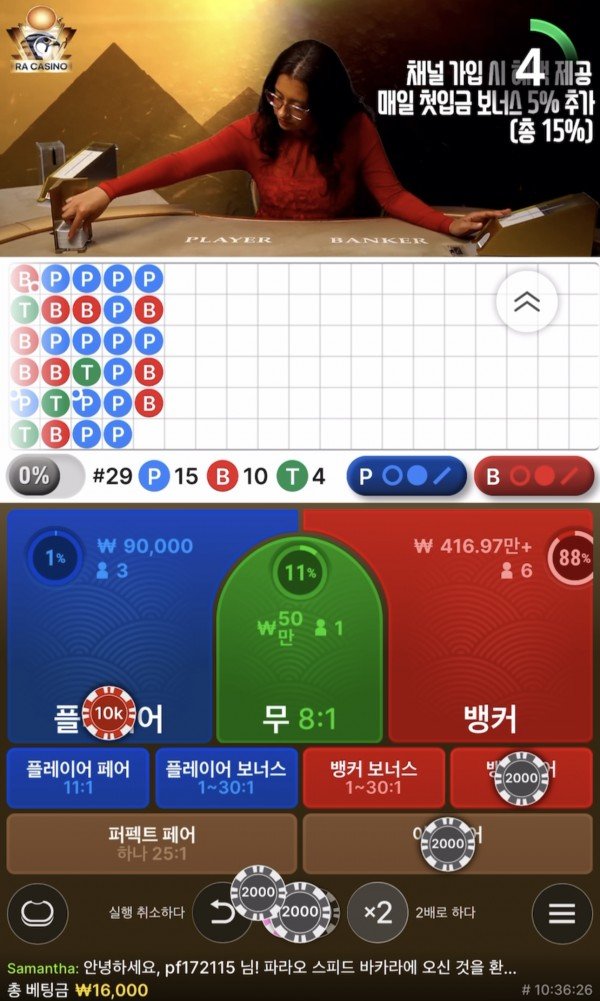 라 카지노 바라카 테이블 이용후기 10월 이후에 11월 연장한다니 이용해야겠죵 !!!단독테이블이 나왔네요 이것저것 텔레그램 이벤트도 많이 하는데 이벤트 챙기느라 너무 바쁘네요 직원 분들도 친절 하시고 추천합니다